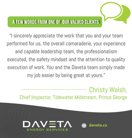 At Daveta Energy Services, our mission is to be a trusted partner across the oil & gas, petrochemical, mining, and pulp & paper industries, delivering efficient energy solutions. We are dedicated to exceeding client expectations with reliable services while upholding the highest safety standards. By leveraging our industry expertise, cutting-edge technologies, and strategic partnerships, we contribute to the responsible and sustainable development of energy resources.